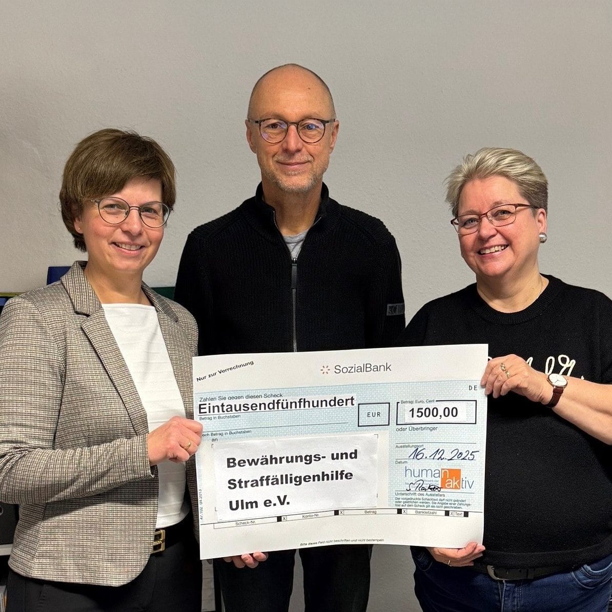 Am 16.12.2025 hat der Verein eine Spende über 1.500 Euro von HUMANAKTIV, dem Hilfswerk der Neuapostolischen Kirche Süddeutschland erhalten. Frau Ahorn und Herr Mäck vom Kirchenbezirk Heidenheim habe die Spende persönlich überbracht.